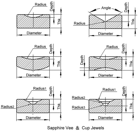 Vee and Cup jewels are mainly used for movement system in electronic meter, hot water meter, liquid measuring instrument, single-phase KHW meter, triphase KHW meter, aviation and navigation instruments, weather apparatus and many other kinds of instruments and apparatus. .